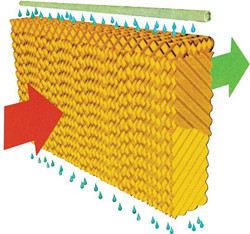 B、喷雾降温:采用喷头将水以雾状落下,因水与空气接触面积大,蒸发量大而降温,效果较好;但受空气湿度影响,一旦空气湿度较大时,该法降温效果一般;